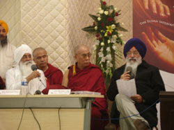 His Holiness the Dalai Lama at the third meeting of the Elijah Board of World Religious Leaders at Nishkam International Centre in Amritsar. Bhai Mohinder Singh, Chairman and Spiritual Successor of Guru Nanak Nishkam Sewak Jatha(sitting first from left) also in the picture (Photo: Jigme Tsering, WebTV, DIIR)