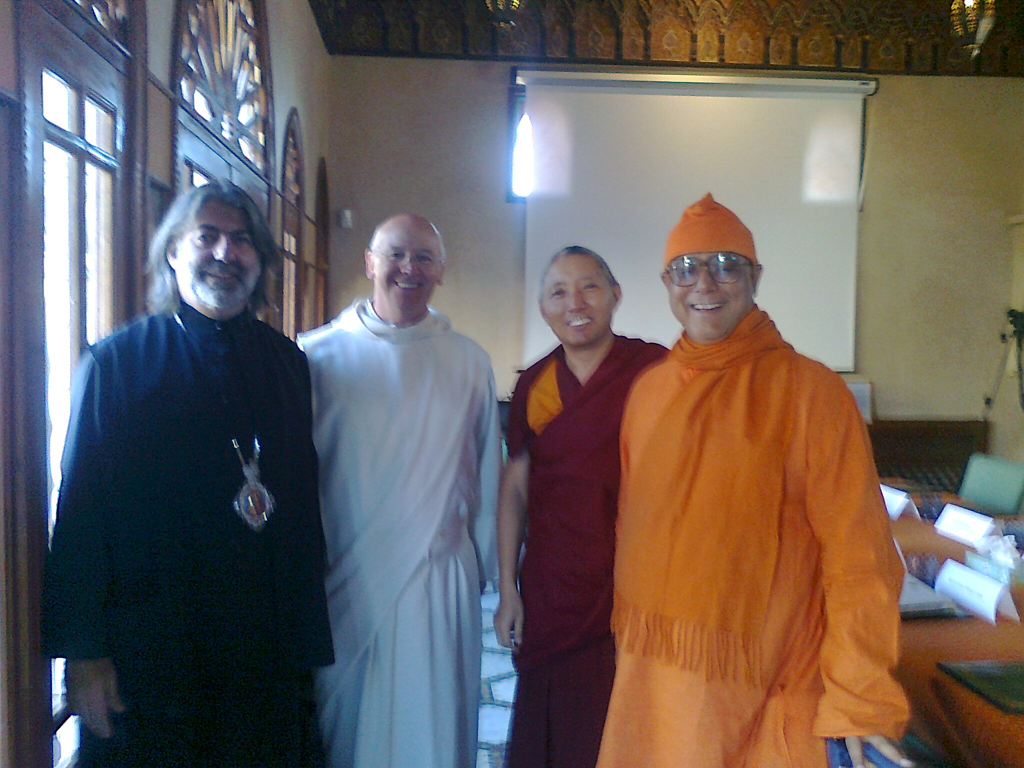 Picture shows Metropolitan Nikitas Lulias, Fr Laurence Freeman, Geshe Tashi Tsering and Swami Atmapriyananda (more details of the seminar appeared in the most recent issue of Sharing Wisdom).